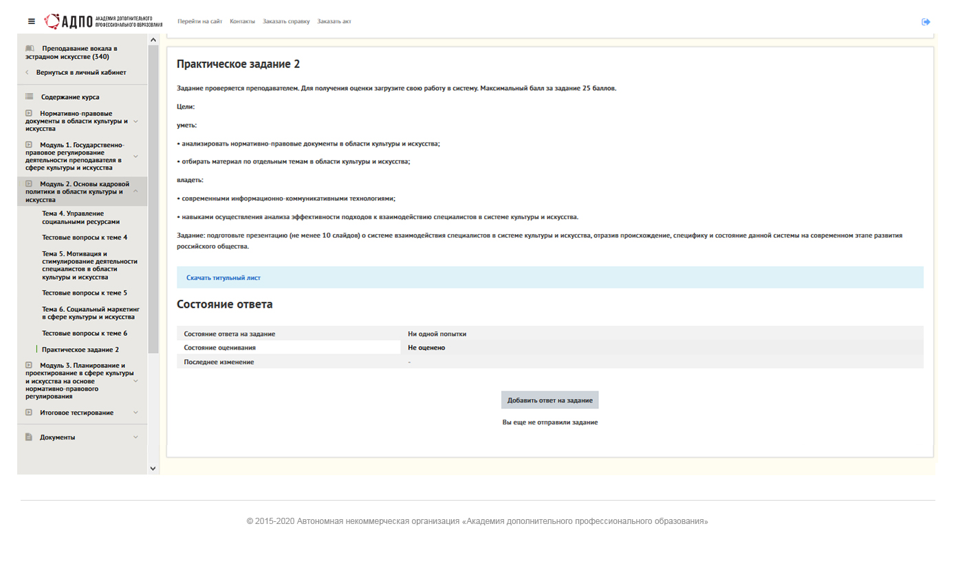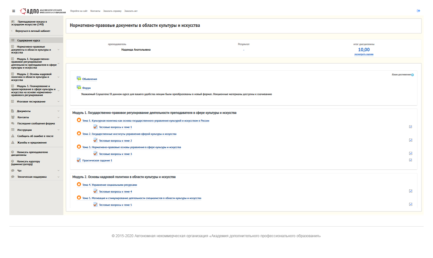 - проходить контроль знаний по темам и модулям.