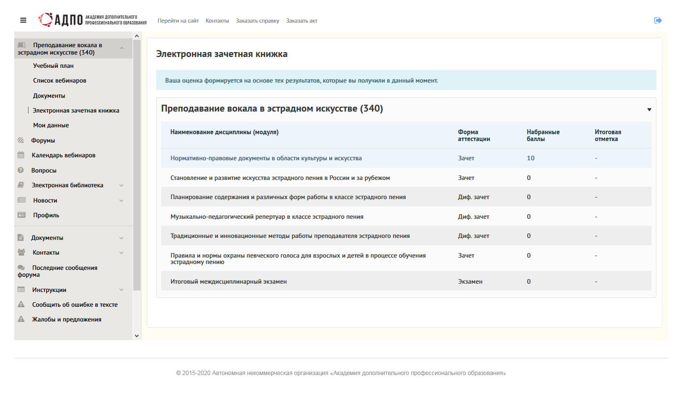 Завершающий этап обучения — итоговое тестирование, междисциплинарный или квалификационный экзамен. По результатам прохождения аттестации вы получаете итоговую оценку.