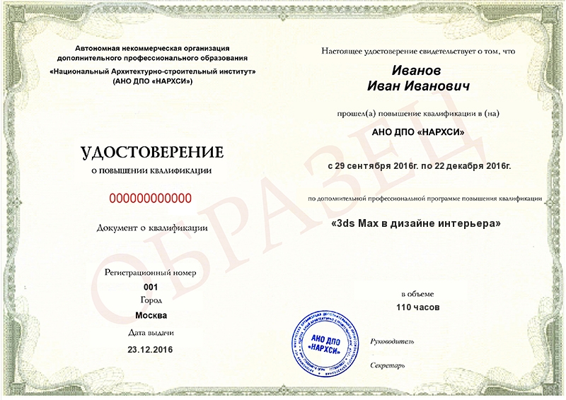 Курс повышения квалификации 3ds Max в дизайне интерьера (110ч)