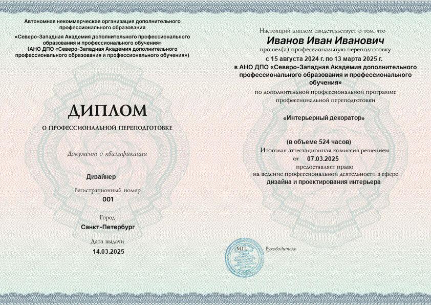 Каждый документ (диплом/удостоверение/свидетельство) соответствует п.2 ст.60 N-273 ФЗ, оформляется на русском языке, печатается на типографском бланке, защищённом от подделок. Ставится официальная печать образовательной организации. С образцами документов можно ознакомиться на сайте в разделе «Лицензия и документы».