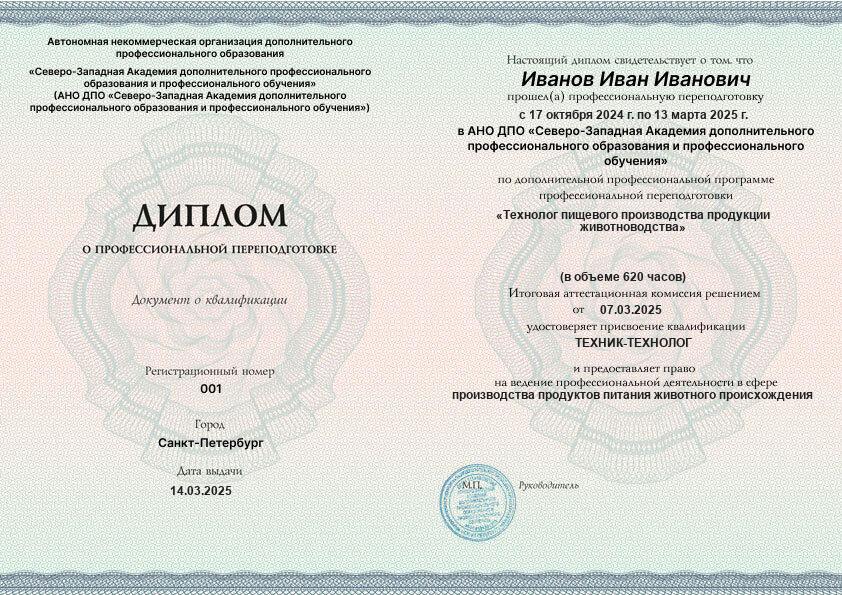 - Получите официальный диплом технолога пищевого производства